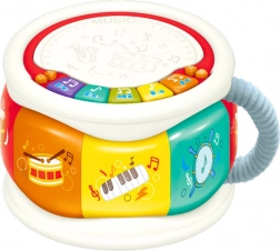 Sicurezza e comfort: La costruzione sicura e i materiali a misura di bambino garantiscono un gioco duraturo e confortevole. Il modello è dotato anche di un manico in peluche che facilita il trasporto del tamburo e garantisce una presa comoda per le piccole mani.