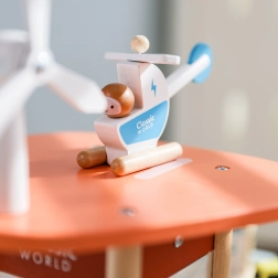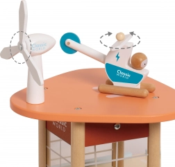 Supporta il pensiero ecologico e insegna ai bambini le fonti energetiche rinnovabili grazie a elementi come pannelli solari e mulino a vento.