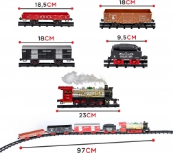 Il set include 29 elementi: locomotiva, carro carbone e vagoni, grazie ai quali i bambini possono assemblare il proprio circuito con dimensioni di 170 × 82 cm. La lunghezza totale del convoglio è di circa 94 cm, quella della pista 460 cm. Un regalo ideale che favorisce lo sviluppo della fantasia e delle abilità manuali.