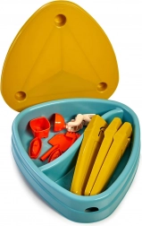 Le vaschette separate permettono di versare acqua e sabbia contemporaneamente. I bambini possono così mescolare, travasare ed esplorare il gioco sensoriale senza disordine.