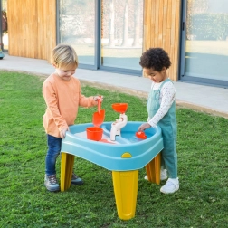 La struttura con gambe rinforzate garantisce alta stabilità, mentre i bordi arrotondati assicurano un uso sicuro anche per i più piccoli. La plastica di qualità con protezione UV mantiene i colori vivaci a lungo. Nella confezione trovi anche 5 pratici accessori per scavare, raccogliere e sperimentare con l’acqua.