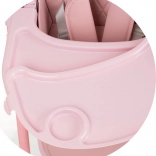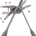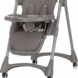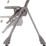 I genitori apprezzeranno il doppio vassoio: quello superiore rimovibile per una pulizia rapida e quello inferiore con barra a T per la massima sicurezza. Puoi adattare facilmente il seggiolone al tavolo da pranzo grazie ai 8 livelli di altezza. Le quattro ruote garantiscono mobilità in casa e dopo i pasti si richiude facilmente in formato compatto.