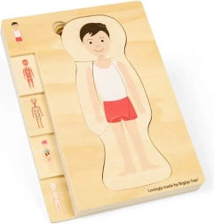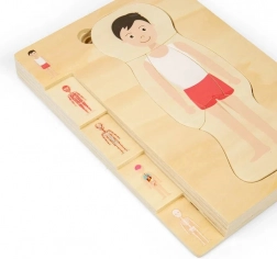 Scopri il corpo umano in modo giocoso con questo puzzle in legno di alta qualità. Grazie ai pezzi a strati, i bambini comprendono la struttura del corpo dallo scheletro agli organi, sviluppando motricità fine e pensiero logico. Realizzato in legno certificato FSC, con vernici atossiche e conforme alle normative di sicurezza europee.