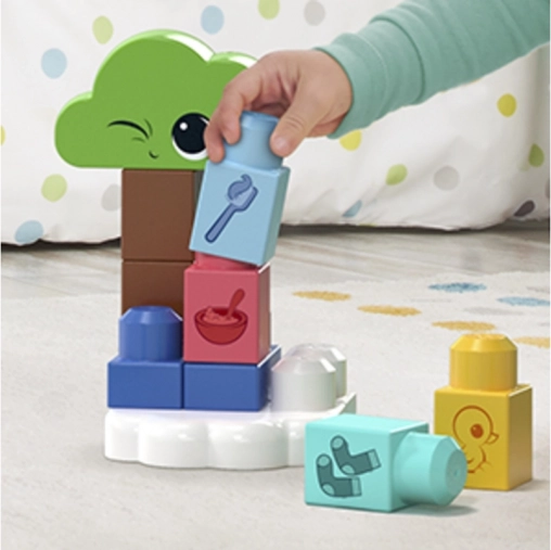 Il set interattivo Mega Bloks con luce notturna aiuta i bambini a creare una sana routine mattutina e serale. Include 4 personaggi e un ambiente costruibile. Sulla luce notturna si può inserire il blocco luna o il sole per avviare ninne nanne, suoni delicati, effetti luminosi e un proiettore di stelle per la sera, oppure canzoncine allegre, suoni dell’ambiente e pattern luminosi solari per il mattino. Ideale per bambini da 1 anno.