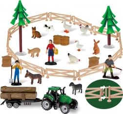 - 12 figure di animali, 3 personaggi, 2 trattori con rimorchi staccabili, fienile/zagroda, recinzioni e altri accessori da fattoria