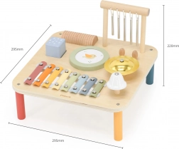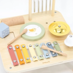 Ogni elemento del tavolino nasconde uno strumento affascinante diverso che stimola a sperimentare e creare melodie proprie. Questo giocattolo multifunzionale è progettato per supportare lo sviluppo sensoriale e creativo dei bambini già da 18 mesi.