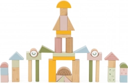 Diversi formati e colori pastello dei mattoncini incentivano la creatività e l'apprendimento di colori e forme.