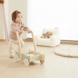La struttura in legno offre un potente supporto per i piccoli piedi, permettendo al bambino di imparare a camminare in sicurezza.