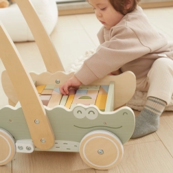 Carrello in legno per mattoncini Viga coccodrillo a spinta