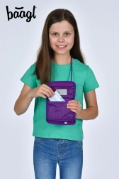 Stiloso portafoglio da collo per bambini con motivo a cuore del marchio BAAGL per l'uso quotidiano. Offre abbastanza spazio per monetine, chiavi e badge mensa, ha un cordino regolabile con chiusura di sicurezza per un trasporto sicuro e una chiusura a velcro. Realizzato in materiale riciclato resistente e dotato di etichetta portanome e di una taschina separata per le monete.