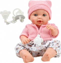 Il set include un ciuccio con catenella che può essere attaccato all'abbigliamento, aggiungendo autenticità al gioco. La bambola è realizzata in materiale plastico resistente, è leggera, pratica e piacevole al tatto - ideale per il gioco quotidiano, coccole e anche per il viaggio.