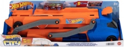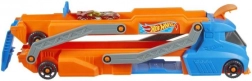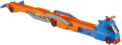 Preparati per incredibili corse e acrobazie con il camion Hot Wheels. Questo enorme camion può caricare fino a nove modellini, che grazie al cassone allungabile fino a 76 cm, sfrecceranno come fulmini. La cabina funge da dispositivo di lancio, permettendo alle macchinine di partire per corse pazze verso nuove avventure.