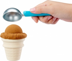 - 17 accessori tra cui palline, coni, coppette, cucchiaini e boccetta di “topping al cioccolato”.