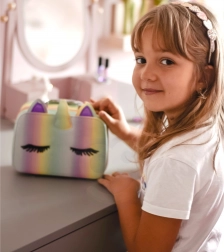 Questa valigetta colorata con specchio incorporato è ideale per conservare in sicurezza cosmetici e accessori. Non solo protegge il loro contenuto, ma aggiunge anche un tocco di magia e gioco in ogni cameretta di ragazza.