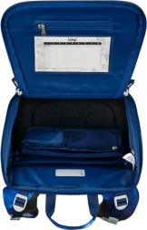 Ampio spazio di stoccaggio con scomparti organizzati e un elastico per un sicuro alloggiamento degli accessori scolastici.