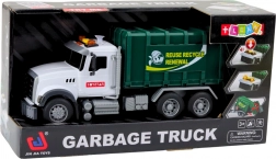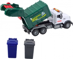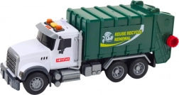 Realistico camion della spazzatura in scala 1:14 con effetti luminosi e sonori, elementi mobili e due bidoni per la raccolta differenziata. Realizzato in plastica robusta, con batterie incluse e un semplice controllo tramite pulsanti sul tetto, garantisce un divertimento lungo e sicuro.