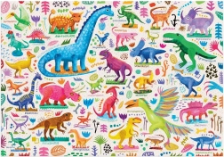 Parti per un'avventura con creature preistoriche! Questo puzzle da 100 pezzi è ideale per giovani paleontologi, con diverse specie di dinosauri che puoi facilmente identificare e conoscere.