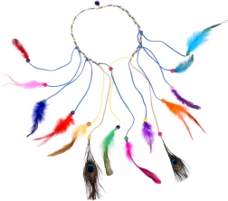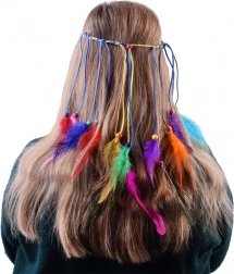 Aggiorna il tuo stile con colori vivaci grazie a questa splendida fascia per capelli boho. È realizzata con piume leggere e colorate in tonalità intense - dal turchese e giallo al rosso e verde. Combinazione con piccole perline di legno e sottili trecce creano un aspetto accattivante e naturale.
