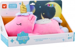 Nella pancia dell'unicorno si trova un pannello interattivo, che consente di attivare varie funzioni rilassanti. È ideale sia per neonati che per bambini più grandi che necessitano di aiuto per addormentarsi.