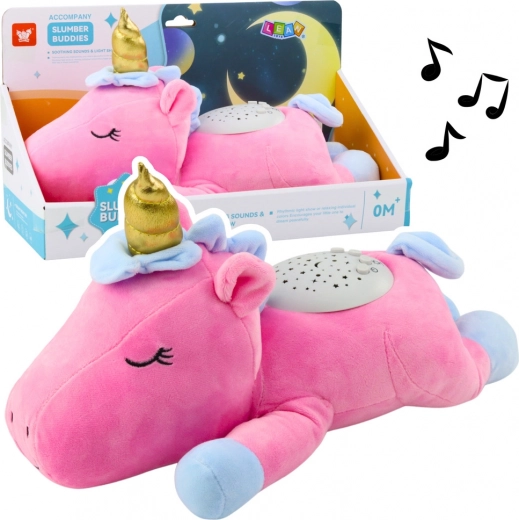 L'unicorno rosa in peluche con proiettore è un giocattolo adorabile e funzionale, che cattura l'attenzione con il suo elegante design rosa con stelline e lune sulle orecchie e zampe. Gli occhi sono in plastica lucida e il naso è ricamato, rendendolo unico.