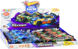 Gli effetti luminosi e sonori si attivano premendo un pulsante, rendendo il gioco ancora più coinvolgente. L'auto è disponibile in due varianti di colore - arancione con elementi verdi e blu con un design dinamico della carrozzeria ispirato alle auto da corsa.