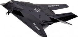 Il caccia militare nero è un giocattolo perfetto per tutti i piccoli fan dell'aviazione. Il modello riflette un design sofisticato e dettagli realistici, inclusi autentici contrassegni delle forze aeree. Il caccia è dotato di un movimento a retrocarica, che gli permette di muoversi automaticamente sul pavimento con una leggera spinta.
