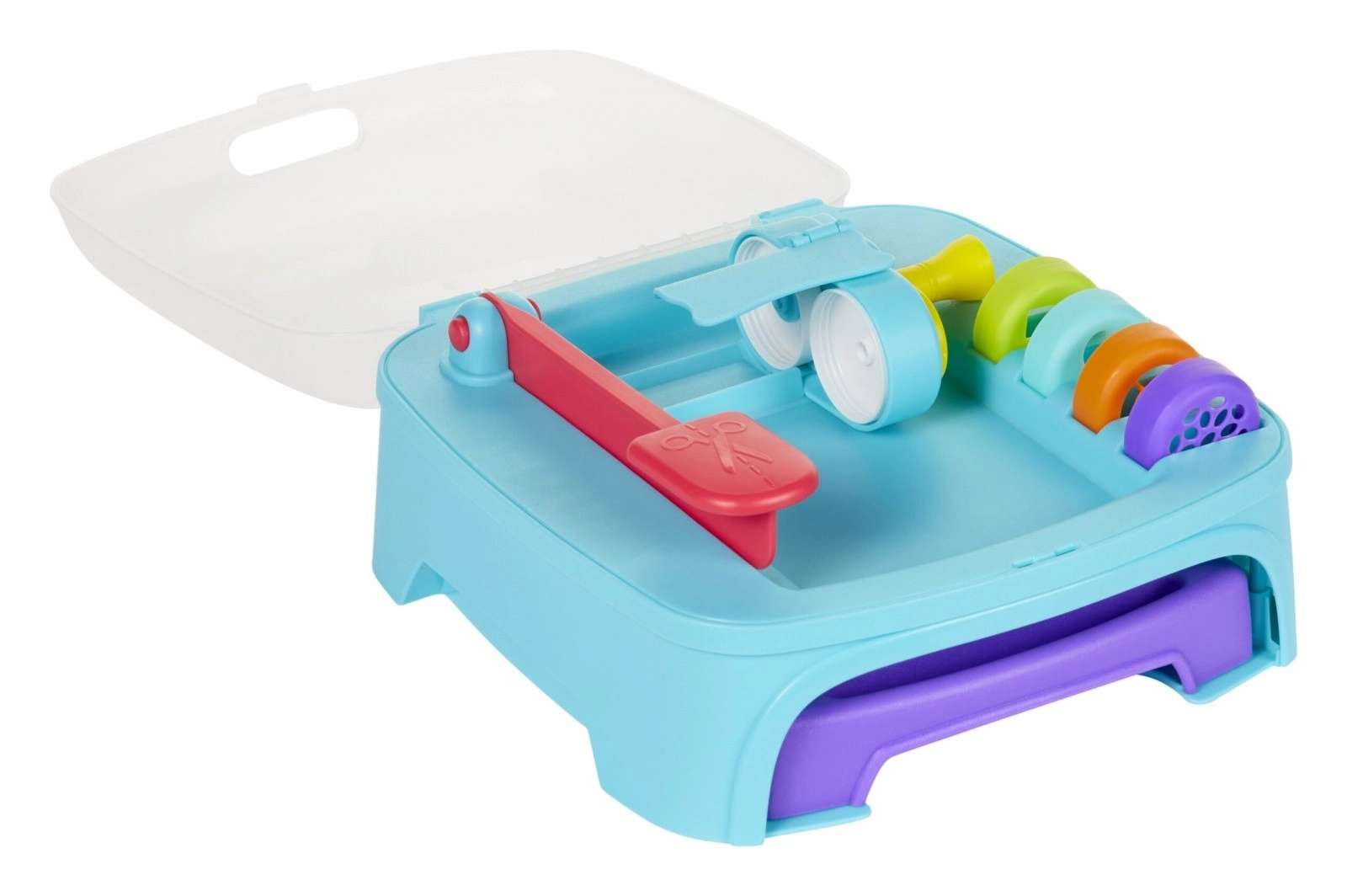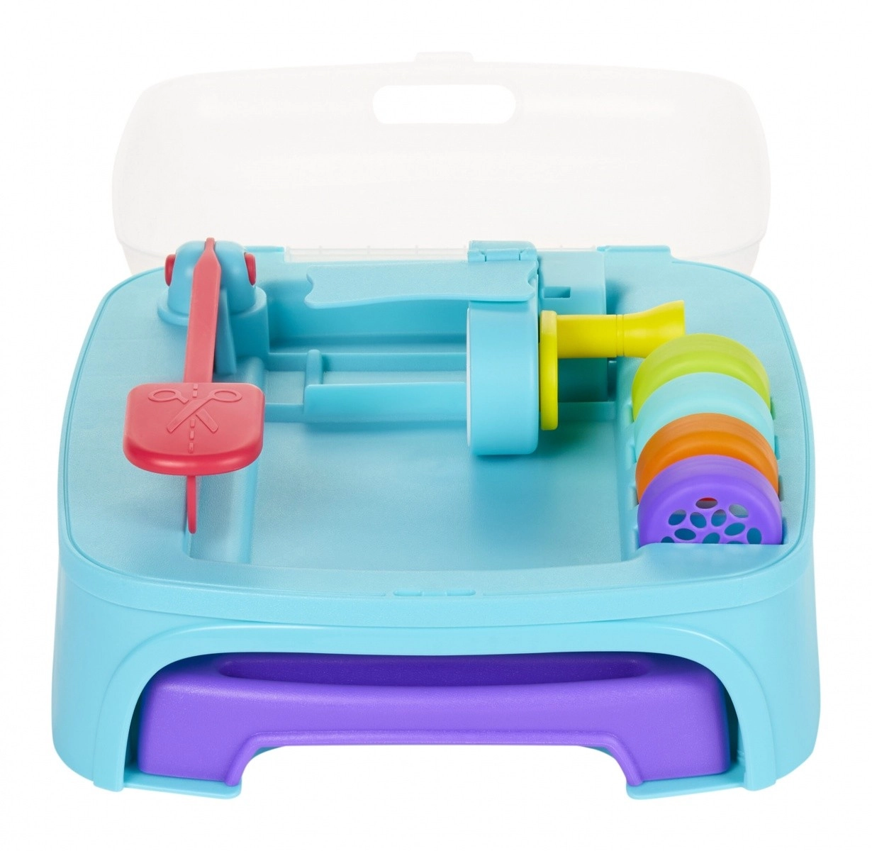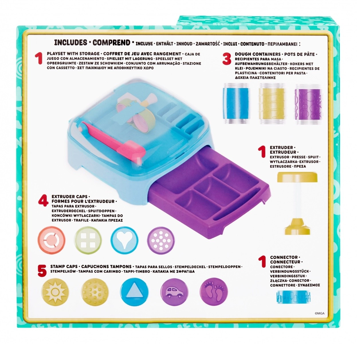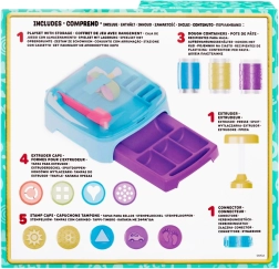 Ogni vasetto di pasta è pronto per il divertimento con timbri e altri accessori. Nella confezione troverai il set di gioco Dough Studio con 3 tubi di pasta da modellare, 5 coperchi con timbri divertenti, 1 attacco con motivi per estrusione e 4 punte per creare altre forme con la tua pasta.