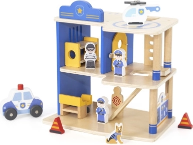 La stazione di polizia VIGA a tre piani è progettata per piccoli agenti dai 3 anni. La solida struttura in legno con dettagli blu offre facile accesso a tutti i livelli e consente ai bambini di ricreare realisticamente interventi, inseguimenti e arresti. Grazie all’eliporto, alla cella e al poligono di tiro, il gioco acquista nuove dimensioni.