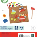 • Contiene 82 elementi: 30 blocchi, 40 puntine, 10 carte con 20 modelli, tavola in sughero e martello
