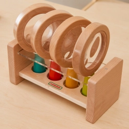 Presentiamo il set di lenti d'ingrandimento in legno progettato per i bambini, affinché possano esplorare il mondo che li circonda in modo sicuro e educativo. Ogni lente ha un manico ergonomico in legno in colori vivaci - rosso, verde, giallo e blu, adatto per le mani piccole.