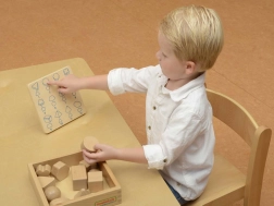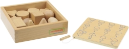 Si consiglia di utilizzare il set in combinazione con la scatola per Scopri forme indovinando al tatto (ME04055). È disponibile anche un vassoio in legno per riporre i giocattoli.