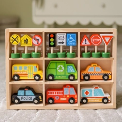 Il set include 6 veicoli, un semaforo e 8 segnali che aiutano i bambini ad acquisire in modo naturale le regole basilari della circolazione stradale.
