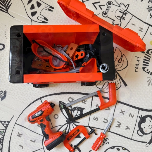 Trasforma la cameretta in una piccola officina con la valigia portautensili 2in1 di Woopie. Questo set robusto si converte facilmente da workshop da banco a trolley con manico. Include 65 pezzi, tra cui un utensile multifunzione realistico a batteria (2× AA, non incluse), occhiali protettivi e un ricco assortimento di utensili per gioco di ruolo creativo, sviluppo della motricità fine e delle abilità di coordinazione.