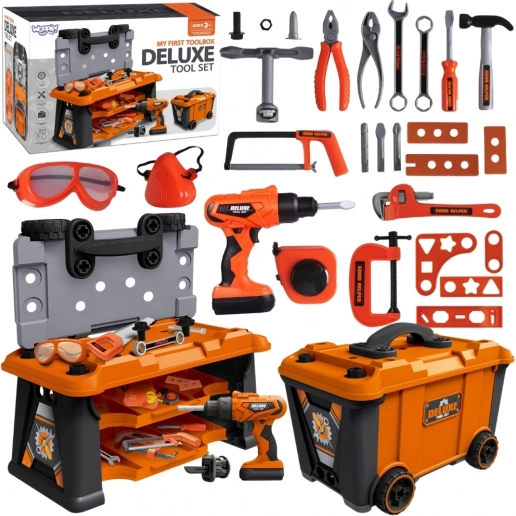 Woopie valigia portautensili 2in1 con 65 pezzi. Officina su ruote, utensili realistici a batteria e occhiali protettivi. Gioco creativo e sviluppo delle abilità.
