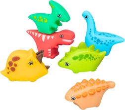 Sotto ogni dinosauro c'è un foro con fischietto - quando premuto emette un suono divertente, aggiungendo fascino al gioco e supporta lo sviluppo dell'udito e la coordinazione mano-occhio. I giocattoli sono ideali non solo per il bagno, ma anche a secco - ad esempio per il gioco su una superficie.