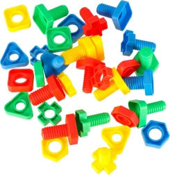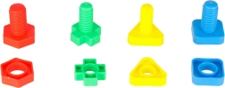 Le singole viti e i dadi hanno forme diverse che vanno abbinate correttamente. Grazie al principio semplice, il set è adatto ai bambini in età prescolare e supporta efficacemente la visione spaziale e la pazienza.