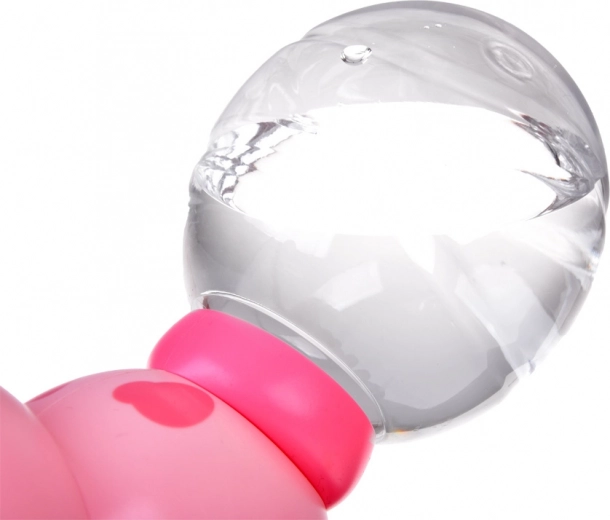 Sul retro del giocattolo si trova un serbatoio trasparente e rotondo per l'acqua. Permette un facile controllo della quantità di liquido e un rapido riempimento. Per riempirlo è sufficiente svitare il tappo, riempirlo d'acqua e rimetterlo.