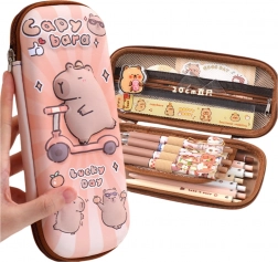 Questo spazioso astuccio è realizzato in materiale resistente e facile da pulire. Dispone di un scomparto principale con divisori a rete che possono contenere penne, matite, pastelli, evidenziatori e altri piccoli oggetti scolastici. La cerniera consente un rapido accesso al contenuto e lo protegge dalla perdita.
