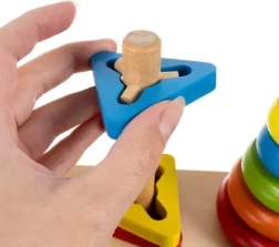 Fate conoscenza con le tre forme di base: cerchio, triangolo e rettangolo. Il giocattolo include una base e molti pezzi facili da manipolare e assemblare.