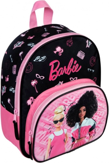 Lo zaino con motivo Barbie offre un aspetto attraente nella combinazione rosa-nero con immagini della bambola preferita.