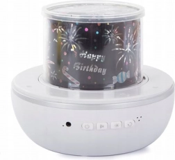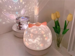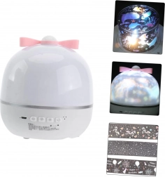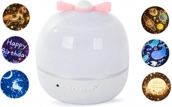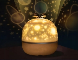 Il proiettore è dotato di sei diversi motivi che permettono ai bambini di proiettare mondi come il cielo stellato, il mondo sottomarino o motivi natalizi. Include una funzione musicale con melodia rilassante, che aiuta i bambini ad addormentarsi più facilmente.