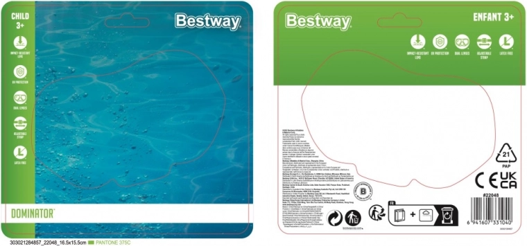 Bestway Dominator è una maschera da nuoto pensata per i piccoli nuotatori, che vogliono sentirsi a proprio agio e al sicuro durante il divertimento in acqua. Questo prodotto combina materiali di qualità per la massima resistenza e comfort.