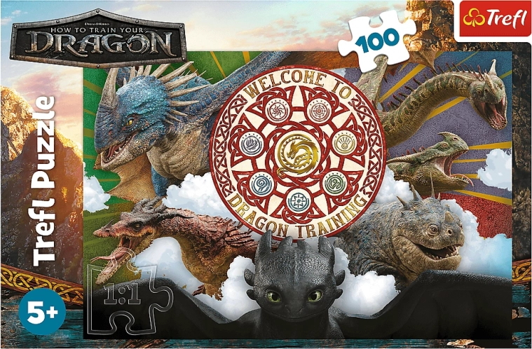 Puzzle per bambini del marchio Trefl con il motivo del film Dragon Trainer, con 100 pezzi che, una volta assemblati, formano un’immagine di 410 × 275 mm. Realizzati con materiali di alta qualità ed ecologici, la speciale carta calandrata riduce i riflessi e facilita il montaggio.