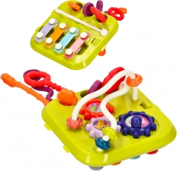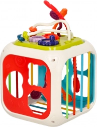 Il cubo offre molte attività che promuovono lo sviluppo sensoriale e la coordinazione occhio-mano.