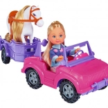 bambola Evi Love, jeep, rimorchio staccabile, cavallino, sella, briglia