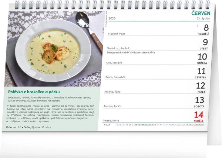 Abbellisci il tuo tavolo con questo pratico calendario da tavolo con ricette di zuppe per l'anno 2026. Offre: