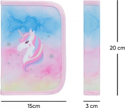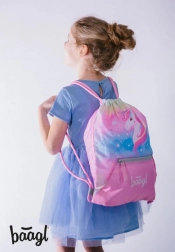 Set per alunni del primo anno BAAGL Zippy plus Rainbow Unicorn con cartella scolastica leggera e resistente, astuccio a un piano e sacca pratica. Tutti i componenti sono realizzati con materiali ecologici e offrono una serie di funzioni pratiche.