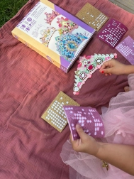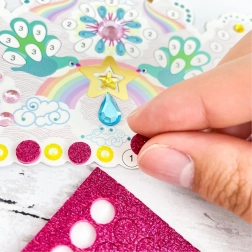 I “gioielli” adesivi e gli elementi scintillanti si applicano con facilità, così anche i più piccoli possono creare design belli e originali senza disordine.