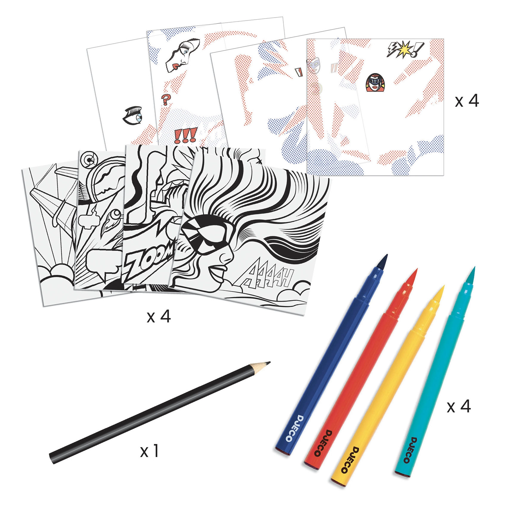 Il set DJECO offre un'opportunità straordinaria di immergersi nel mondo della pop art con un tocco di originalità. Questa attività creativa motiva i giovani talenti a esplorare lo stile unico di Roy Lichtenstein e a scoprire la propria individualità artistica.