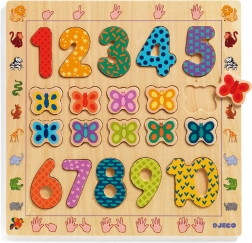 Il puzzle a incastro Contare con farfalle del marchio DjECO offre divertimento e istruzione in uno. Aiuta i bambini a sviluppare la motricità fine, il riconoscimento delle forme e il conteggio di base.